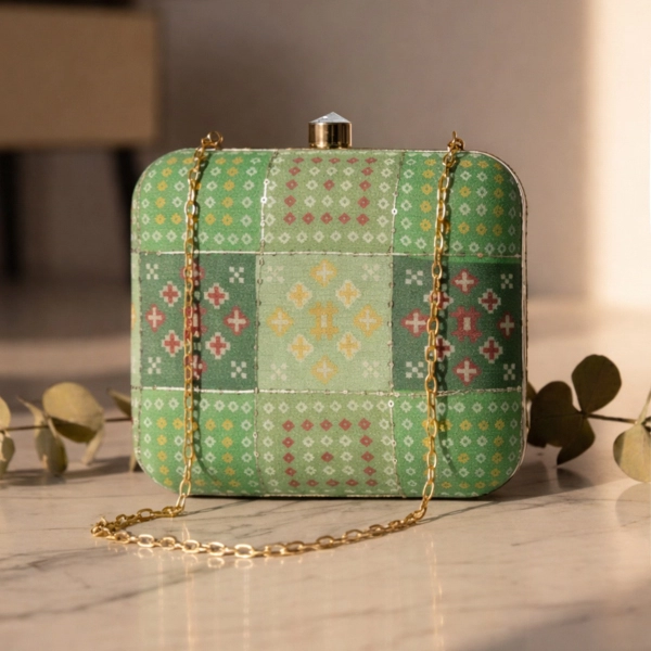 Royal Threadwork Embroidery Clutch – the beautifully embroidered patterns add a festive touch, making it perfect for weddings, festive celebrations, parties, and special occasions. Comes with a detachable gold chain for comfortable hand or shoulder carrying.