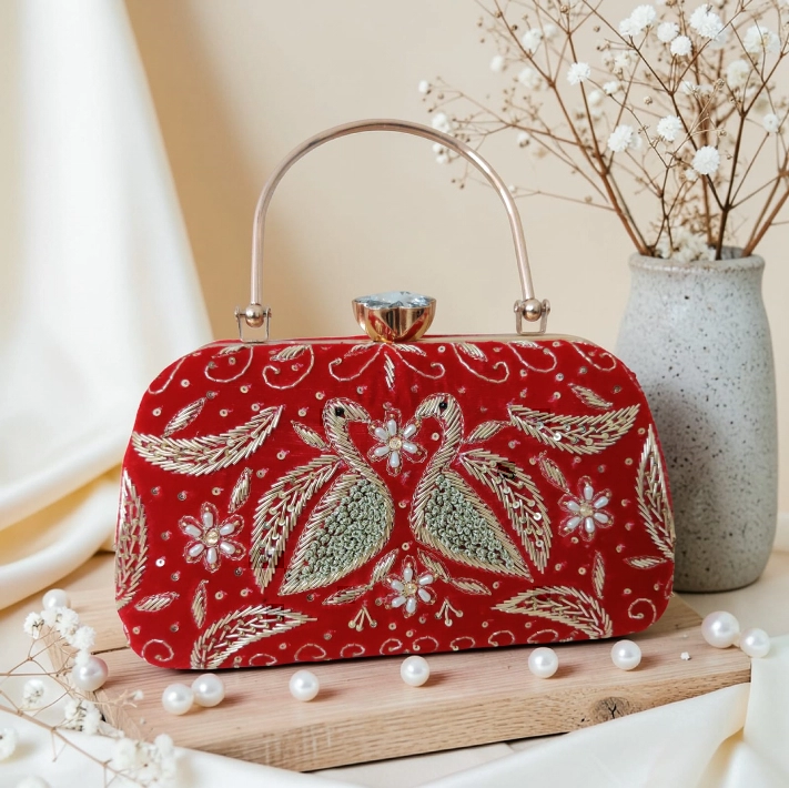 Swan Embroidery Handle Clutch, designed with a structured silhouette and a stylish handle, this clutch blends traditional craftsmanship with a unique statement look. Perfect for weddings, festive occasions, parties, and special events, it effortlessly enhances both ethnic and fusion outfits.